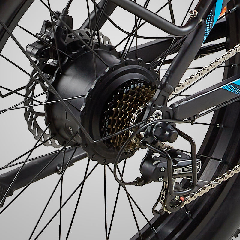 The P26 plus has designed three different driving modes for customers, thanks to the 7-speed Shimano shifting system, which effectively solves the driving problems you encounter on mountainous, snowy, and other difficult roads.